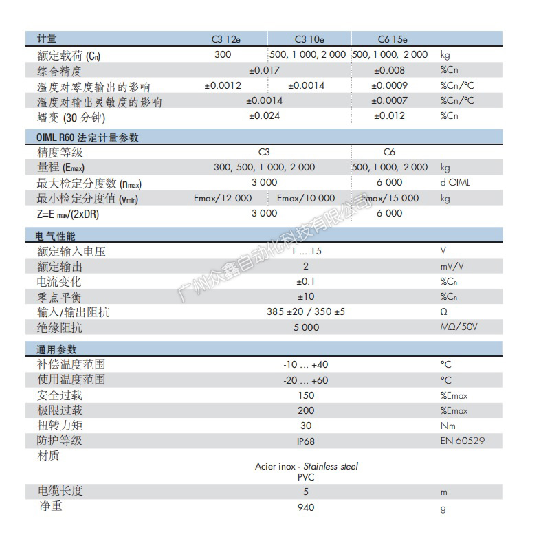 精度符合 6 000 d OIML R60 以及 5 000 d NTEP