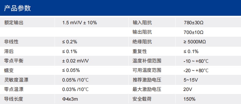 四、CR169-B力傳感器技術參數(shù)
