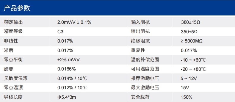 四、SLB2稱重傳感器技術參數(shù)
