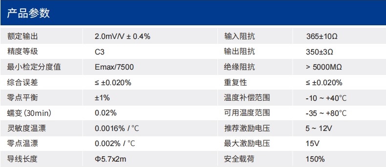 四、SLTJ稱重傳感器技術(shù)參數(shù)