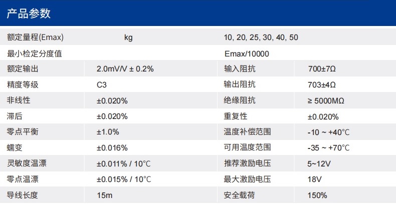 四、PGDxC稱重傳感器技術(shù)參數(shù)