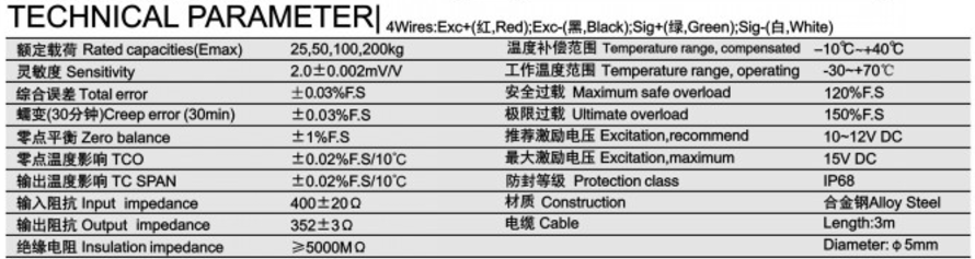 柯力HSX-A系列稱重傳感器技術(shù)參數(shù)