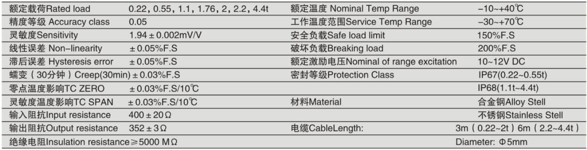 柯力SBT-A系列稱重傳感器技術(shù)參數(shù)