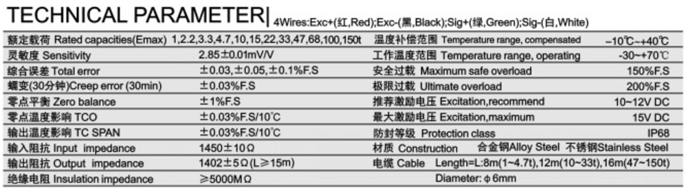 柯力NHS-A系列稱重傳感器技術(shù)參數(shù)