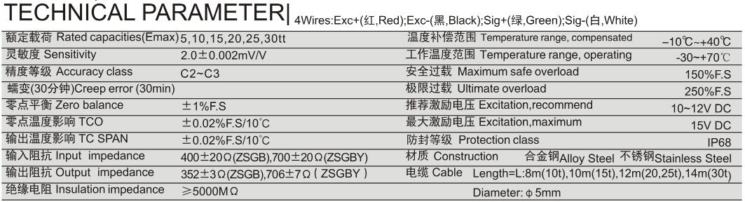 柯力ZSGB系列稱重傳感器技術(shù)參數(shù)