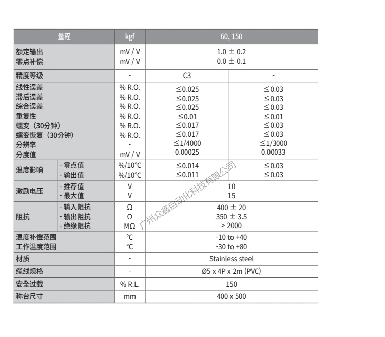 五、韓國(guó)凱士CAS品牌 BCLS-150L稱(chēng)重傳感器技術(shù)參數(shù)