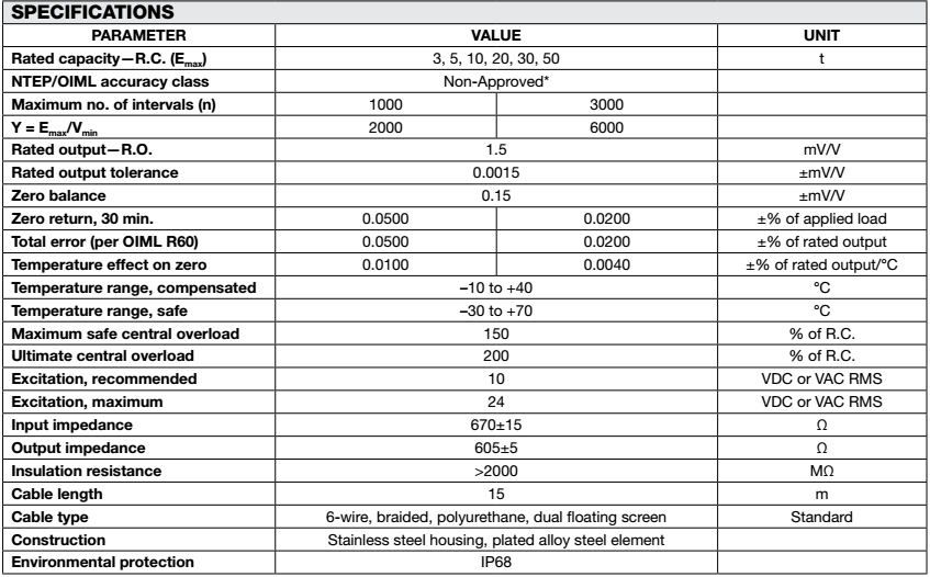 Tedea-Huntleigh特迪亞120系列技術(shù)指標(biāo)