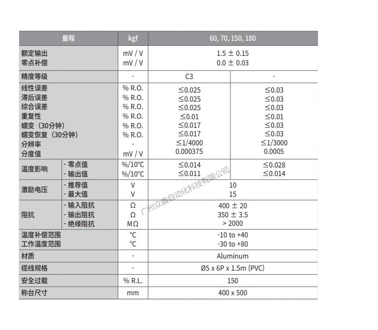 五、韓國凱士CAS品牌 BCW-180L稱重傳感器技術(shù)參數(shù)