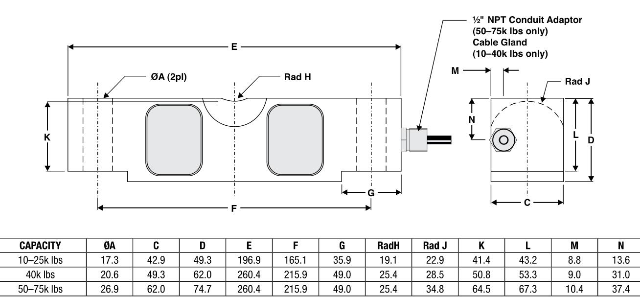 -量程:10,20,25,40,50,60,75 klbs