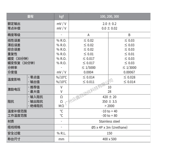 五、韓國(guó)凱士CAS品牌 BCEP-300L-EXP稱重傳感器技術(shù)參數(shù)