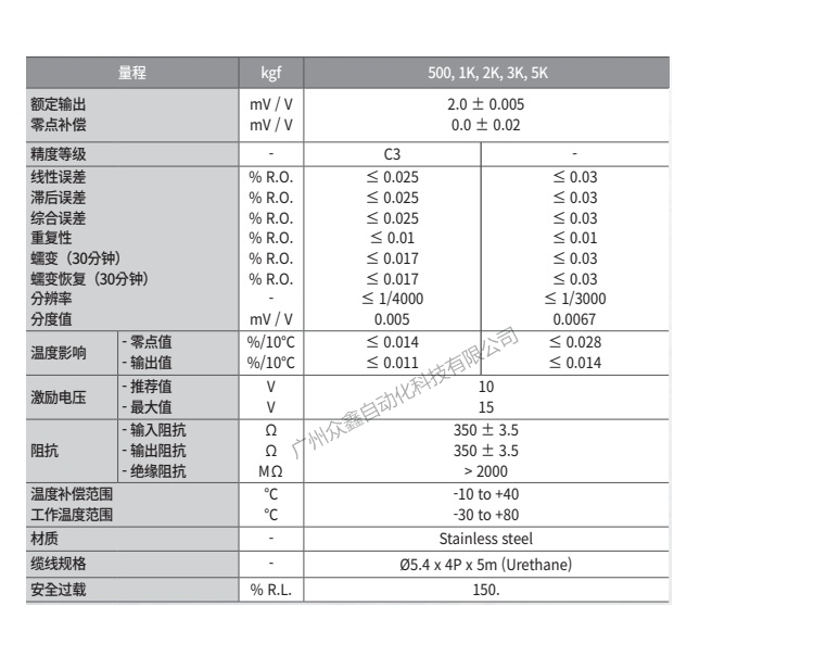 五、韓國凱士CAS品牌 BSS-5T稱重傳感器技術(shù)參數(shù)