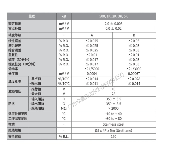 五、韓國凱士CAS品牌 BSS-5T-EXP稱重傳感器技術(shù)參數(shù)