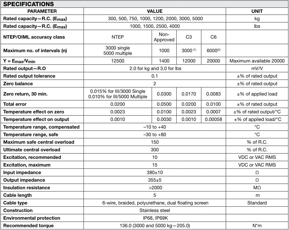 -量程 300 - 5000kg;1000 - 5000lbs