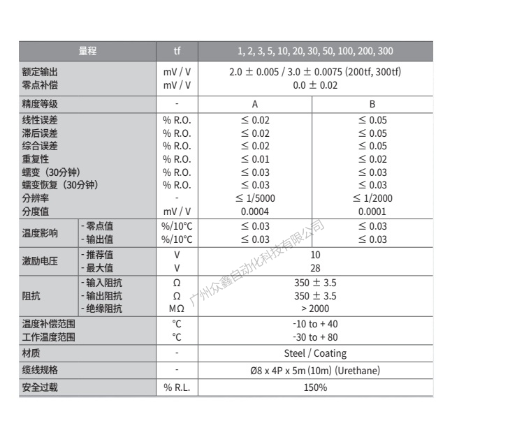 五、韓國(guó)凱士CAS品牌 LS-300T-EXP稱重傳感器技術(shù)參數(shù)