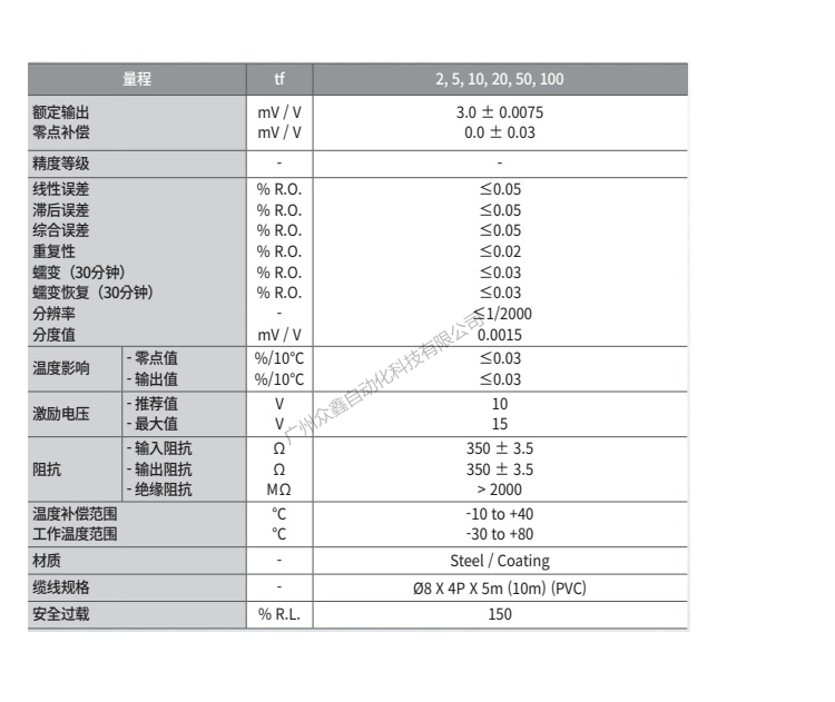 五、韓國凱士CAS品牌 LSC-100T稱重傳感器技術參數(shù)