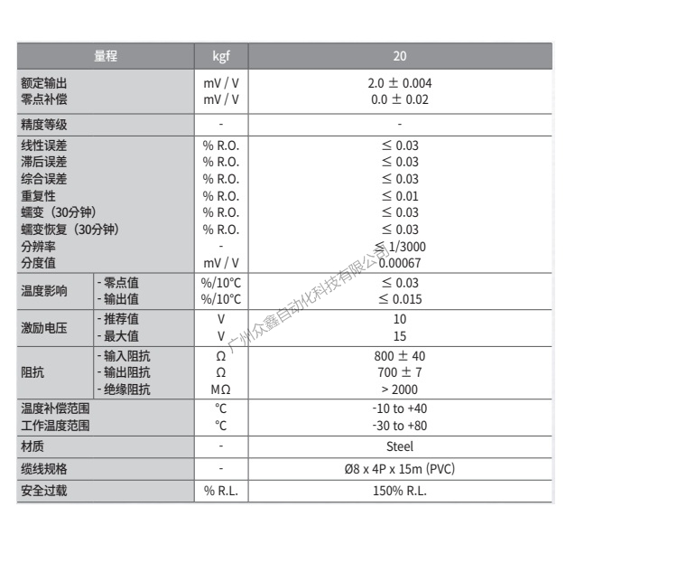 四、韓國凱士CAS品牌 DSB-20稱重傳感器技術(shù)參數(shù)