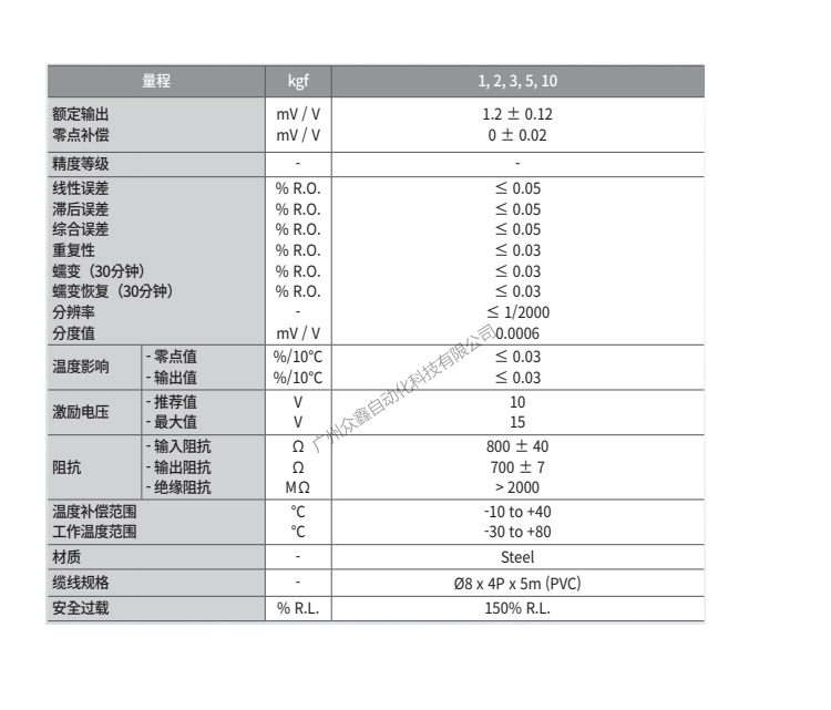 五、韓國(guó)凱士CAS品牌 DSBV-10T稱重傳感器技術(shù)參數(shù)