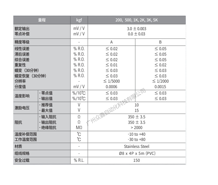 五、韓國凱士CAS品牌 CTS-5T稱重傳感器技術(shù)參數(shù)