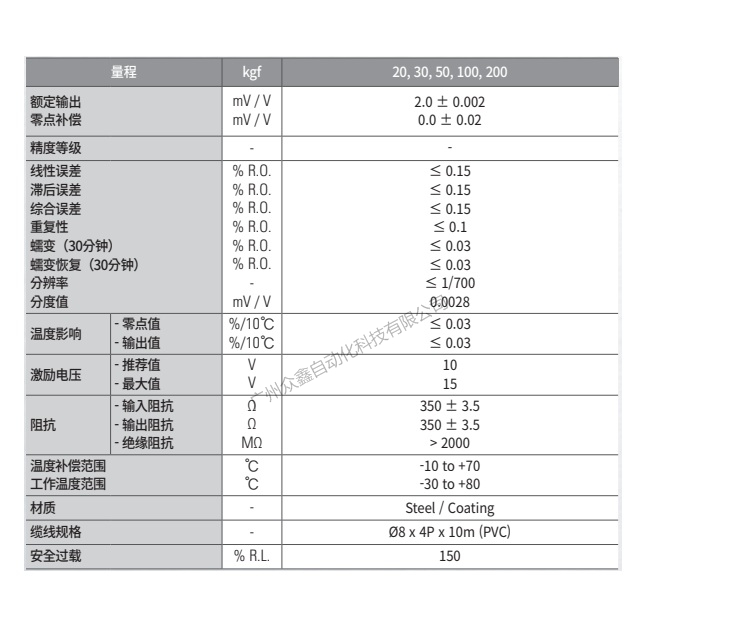 五、韓國凱士CAS品牌 HC-200T稱重傳感器技術(shù)參數(shù)