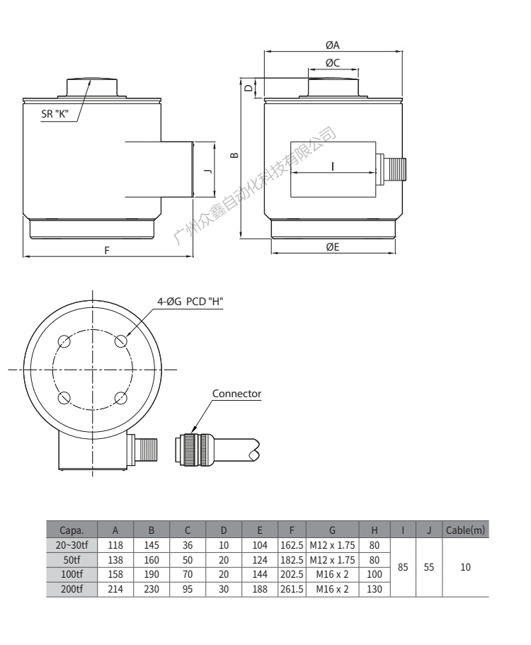 四、韓國凱士CAS品牌 HC-200D稱重傳感器產(chǎn)品尺寸