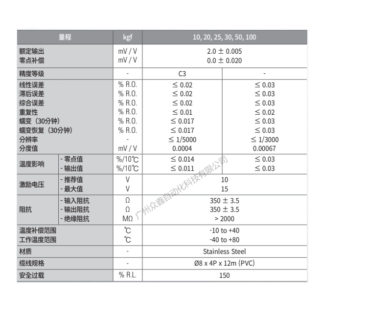 五、韓國凱士CAS品牌 WBK-100T稱重傳感器技術(shù)參數(shù)