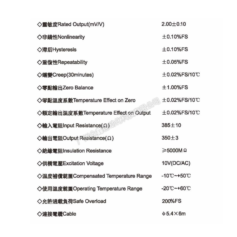 四、PV-2-1t防過載傳感器技術(shù)參數(shù)