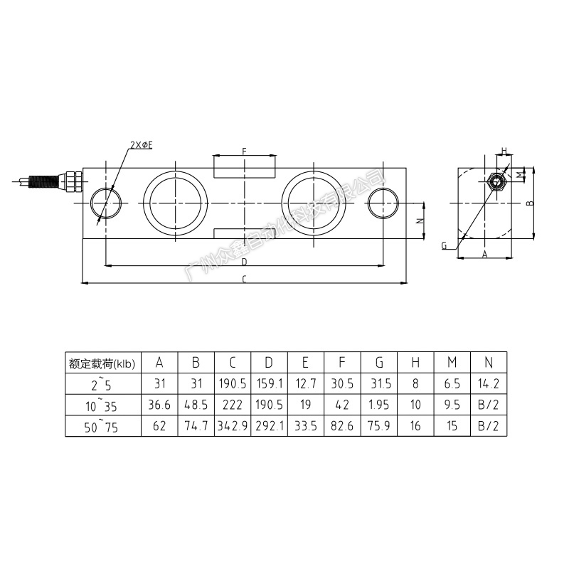(5)電纜長度6m(2~5klb),10m(10~35klb),16m(50~75klb)