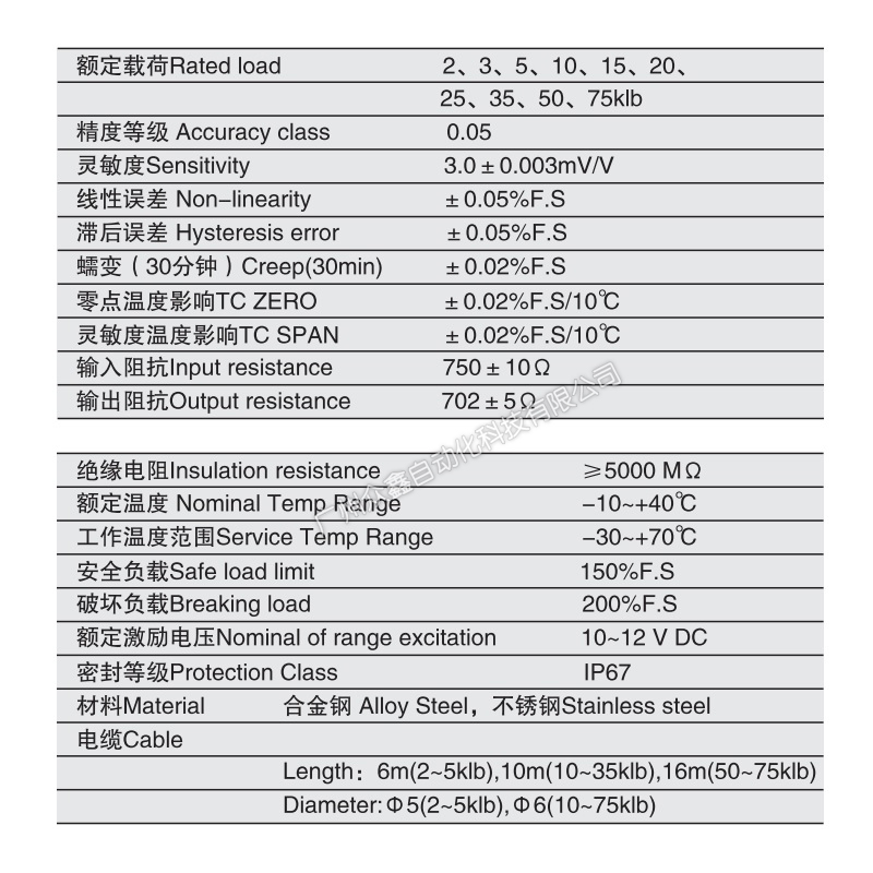 三、QSF-2klb稱重傳感器產品參數