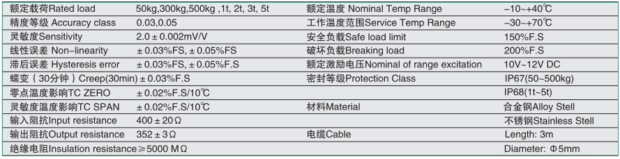 寧波柯力 1-SBO系列技術數據