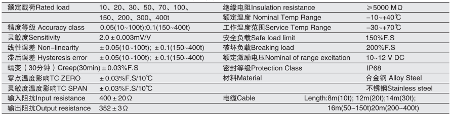 寧波柯力 1-ZSC系列技術(shù)數(shù)據(jù)