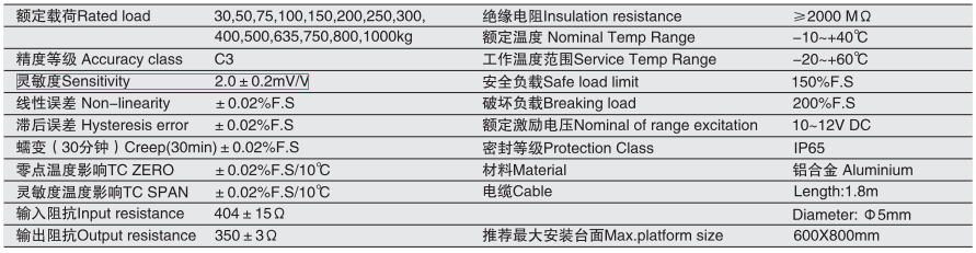 寧波柯力 1-UDJ系列技術數(shù)據(jù)