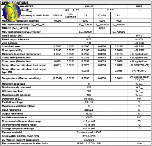 認(rèn)證OIML R-60.4000d和NTEP 10000d