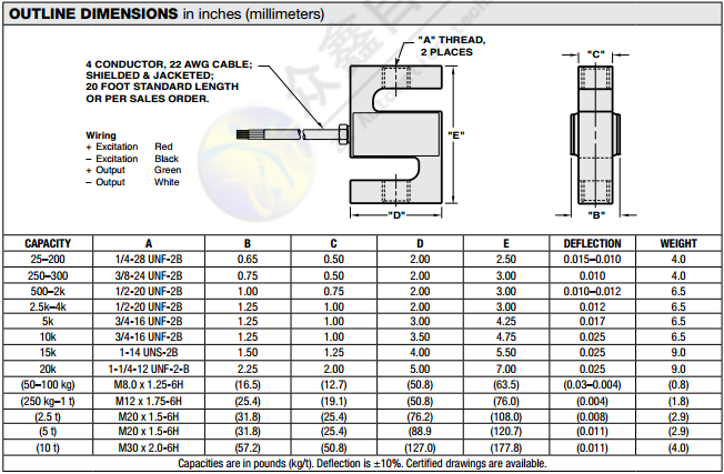量程范圍: 25lbs~20klbs