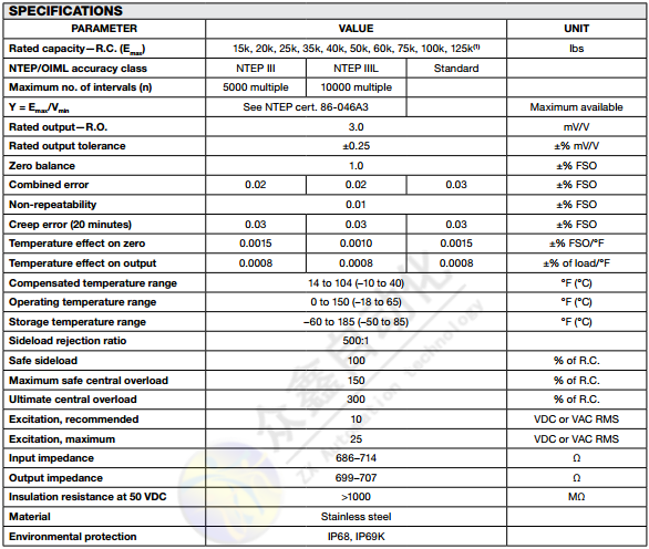 稱(chēng)重傳感器性能指標(biāo)