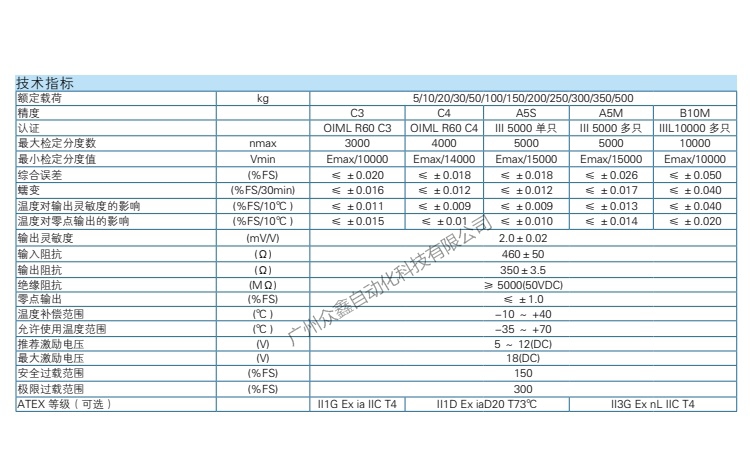 五、ZEMIC品牌 BM11稱(chēng)重傳感器技術(shù)參數(shù)