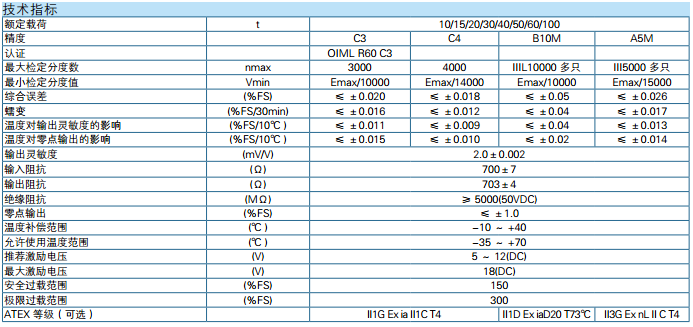 中航電測ZEMIC傳感器BM14K系列所有量程如下: