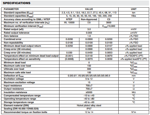 美國(guó)Vishay Revere稱重傳感器5103系列產(chǎn)品參數(shù):