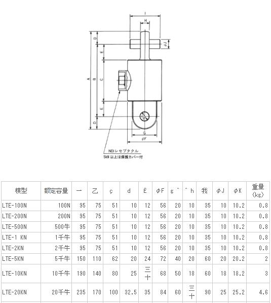 日本NTS_LTE-200N 稱重傳感器,LTE-2KN張力傳感器, LTE-20KN張力傳感器