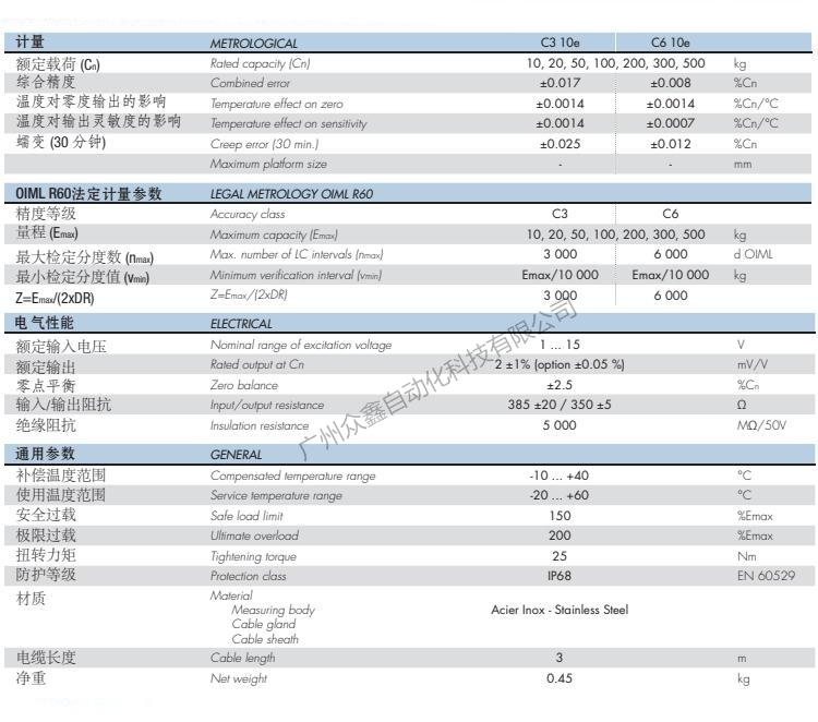 五、法國世感Scaime品牌 F60X稱重傳感器技術參數(shù)