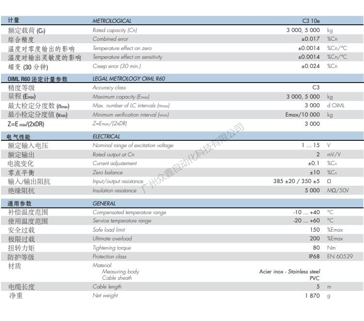 五、法國(guó)世感Scaime品牌 SK30X稱重傳感器技術(shù)參數(shù)