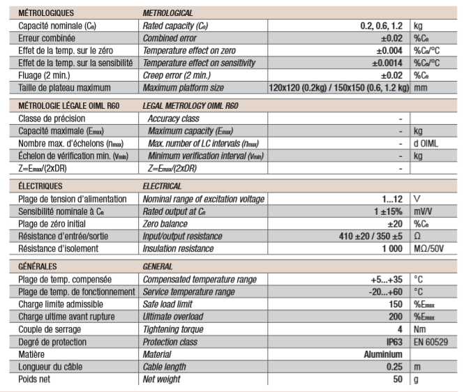 額定量程(千克) 0.2…1.2