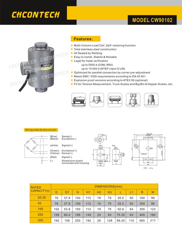廣州眾鑫自動(dòng)化科技有限公司】專(zhuān)業(yè)供應(yīng)美國(guó)chcontech CW90102系列稱(chēng)重傳感器,【CW90102柱式傳感器】CW90102-20t~100t_