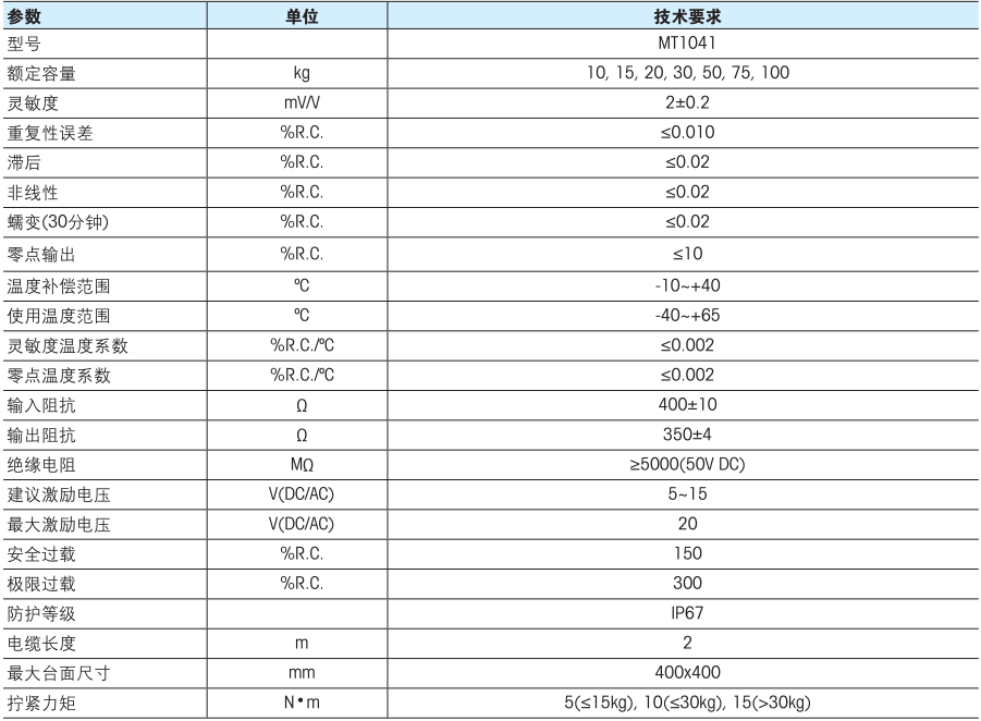 稱重傳感器相關(guān)型號:MT1041-10kg,MT1041-15kg,MT1041-20kg,MT1041-30kg,MT1041-50kg,MT1041-75kg,MT1041-100kg.