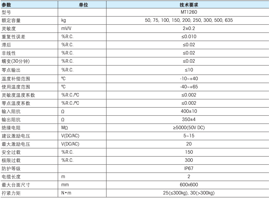 【MT1260傳感器】MT1260-50kg~MT1260-635kg_MettlerToledo梅特勒托利多稱重傳感器