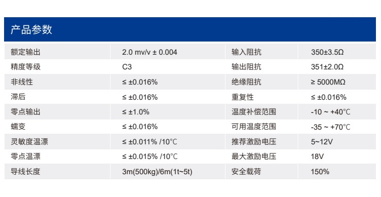 四、SLSH稱重傳感器技術(shù)參數(shù)