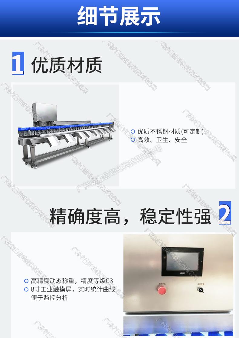 7、本設(shè)備廣泛用于海鮮、水產(chǎn)、禽肉、果蔬、藥材、工業(yè)品、日化等行業(yè)的分選