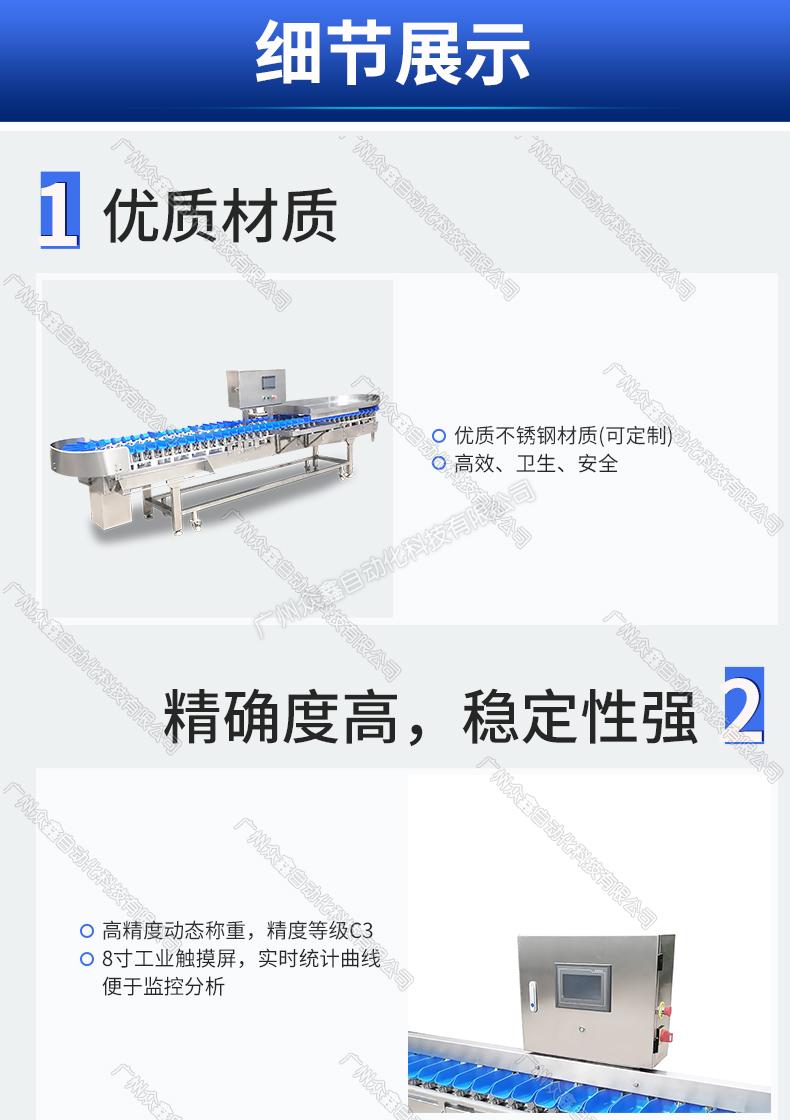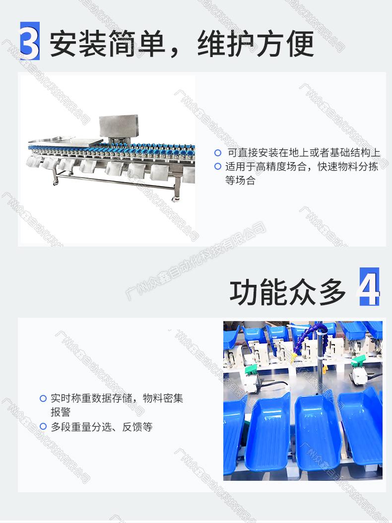 7、本設備廣泛用于海鮮、水產(chǎn)、禽肉、果蔬、藥材、工業(yè)品、日化等的分選。