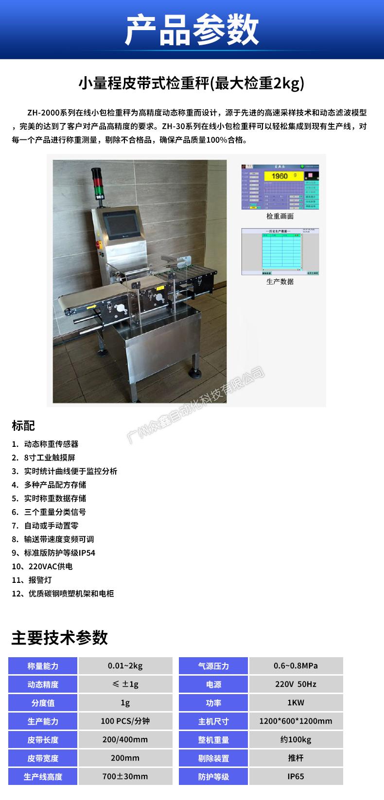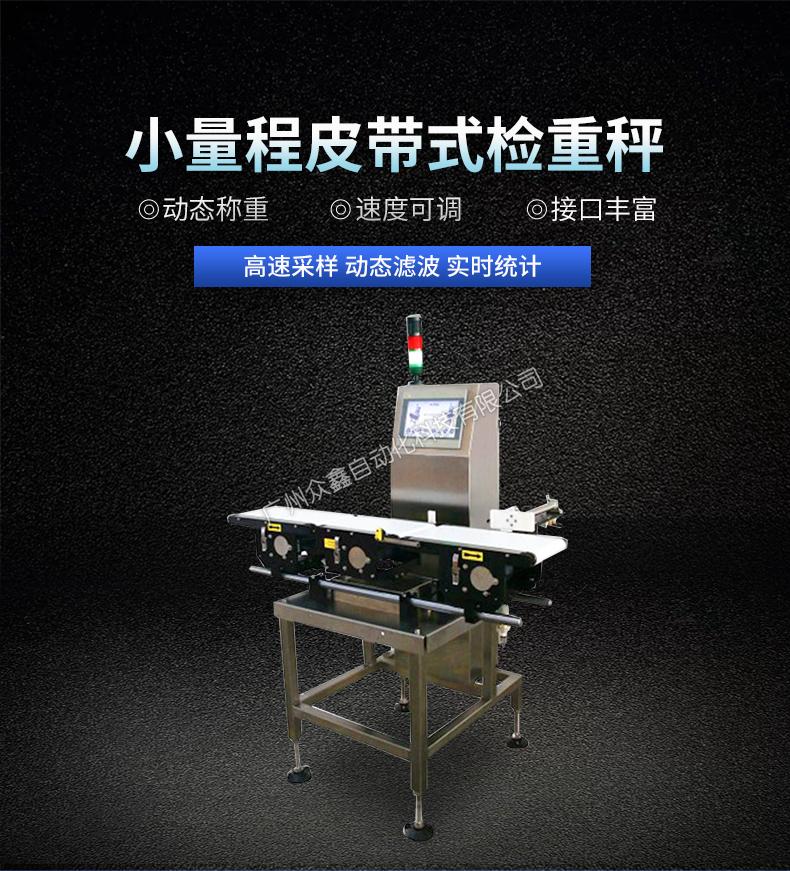 ZH-2000系列在線(xiàn)小包檢重秤為高精度動(dòng)態(tài)稱(chēng)重而設(shè)計(jì),源于先進(jìn)的高速采樣技術(shù)和動(dòng)態(tài)濾波模型 ,完美的達(dá)到了客戶(hù)對(duì)產(chǎn)品高精度的要求。ZH-30系列在線(xiàn)小包檢重秤可以輕松集成到現(xiàn)有生產(chǎn)線(xiàn),對(duì) 每一個(gè)產(chǎn)品進(jìn)行稱(chēng)重測(cè)量,剔除不合格品,確保產(chǎn)品質(zhì)量100%合格。