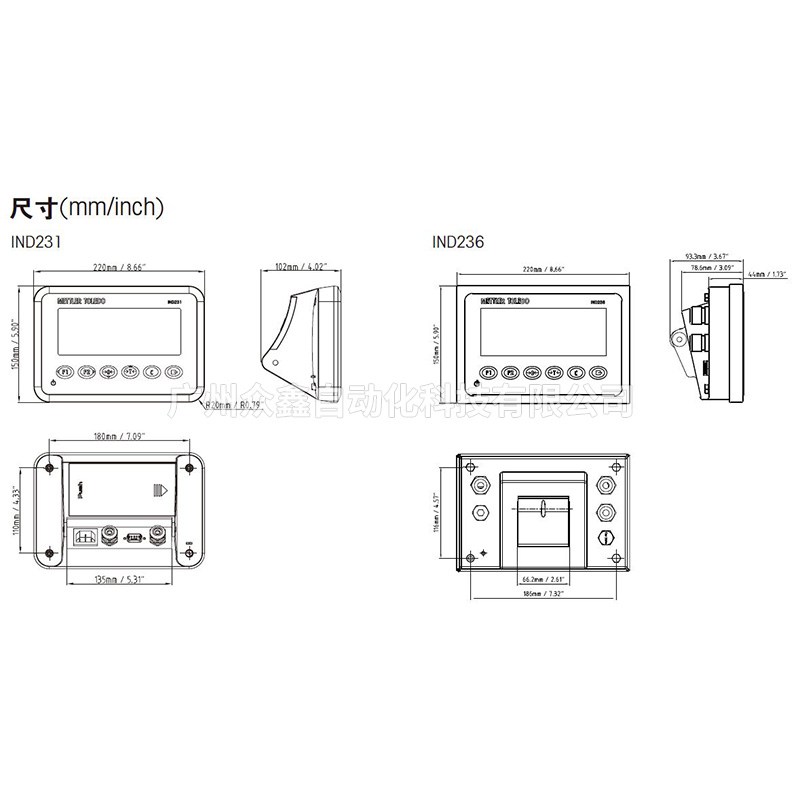 五、梅特勒托利多 IND236稱重儀表尺寸
