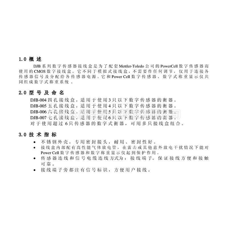 梅特勒托利多DJB接線盒技術(shù)指標(biāo)